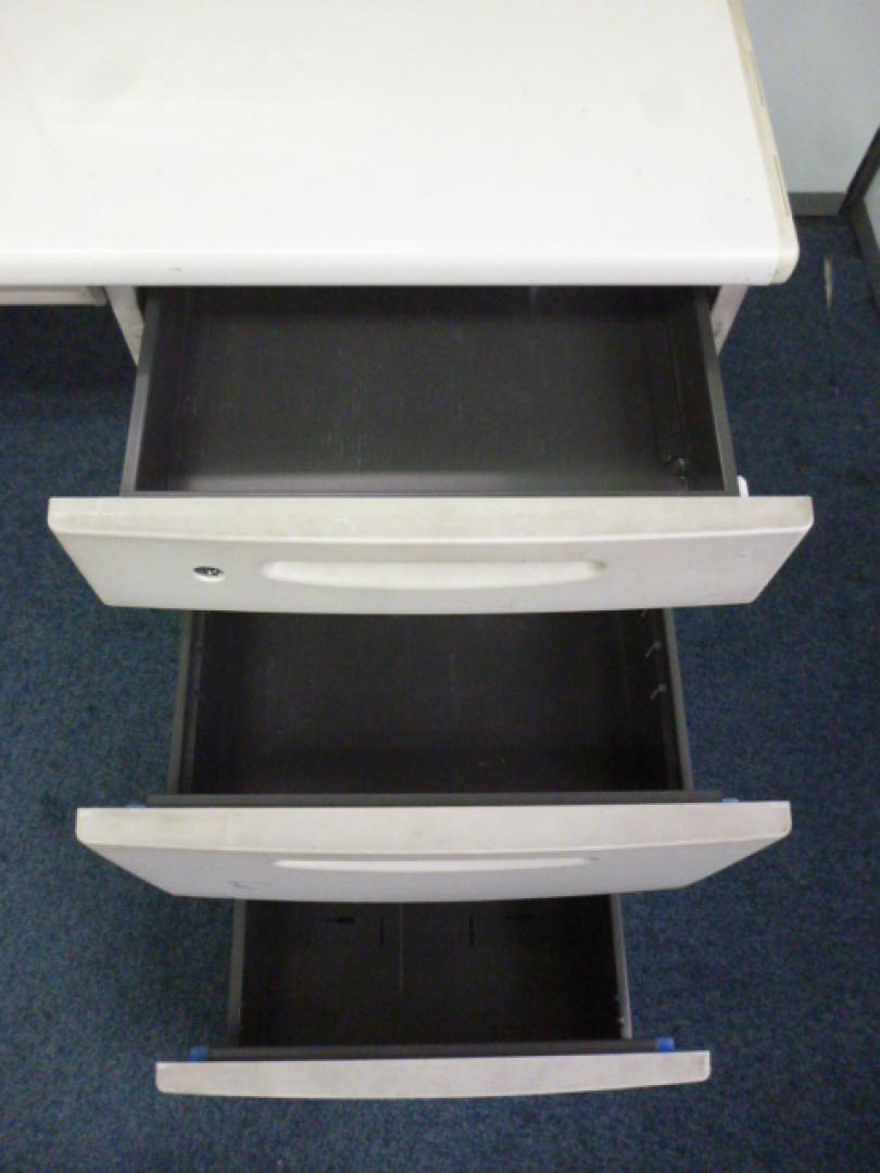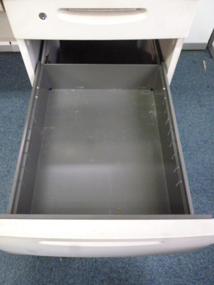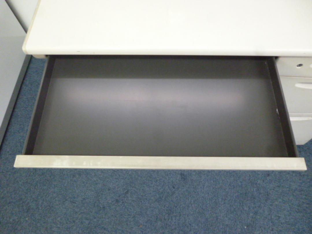 - 袖机のワゴンは、最下段がロング引出しになっており、従来より収納力120%アップ。