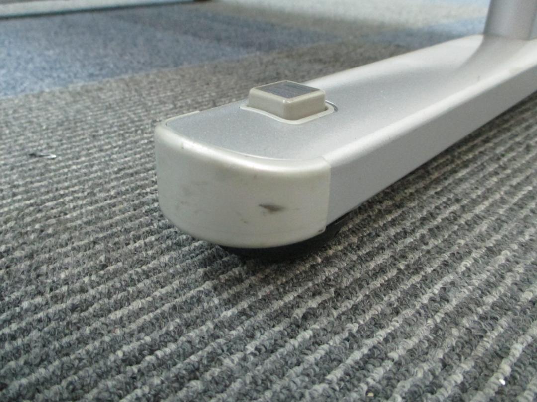 - 一部不具合あり天板歪み、アジャスター無し、キャスター使用不可ようなそのテーブルの本来の効用を果たすための機能以外の一部が使用不可な状態。(例、キャスターロッ ク機能使用不可、棚板無し等がある。)