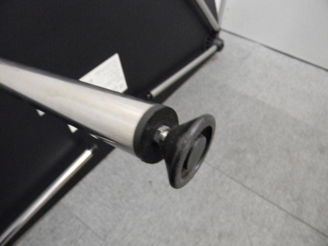 - 一部不具合あり天板歪み、アジャスター無し、キャスター使用不可ようなそのテーブルの本来の効用を果たすための機能以外の一部が使用不可な状態。(例、キャスターロッ ク機能使用不可、棚板無し等がある。)