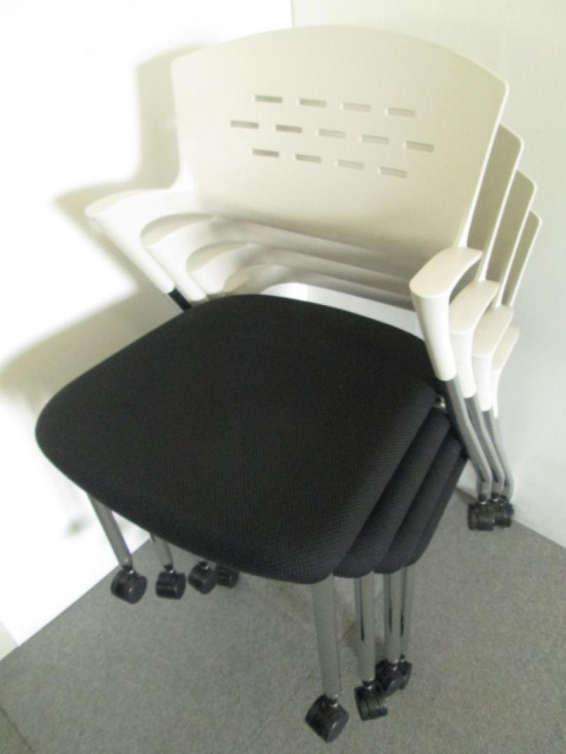 4脚【セット商品】スタッキングチェア ブラック キャスター付- 名古屋本店