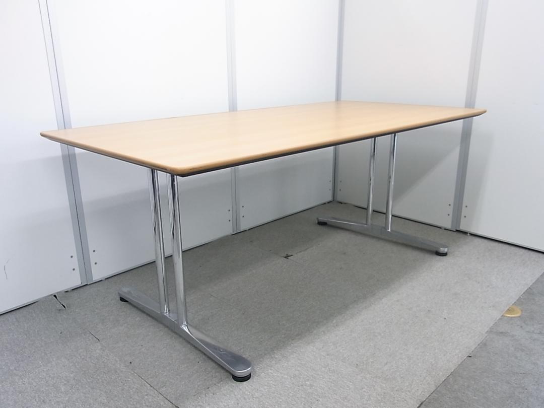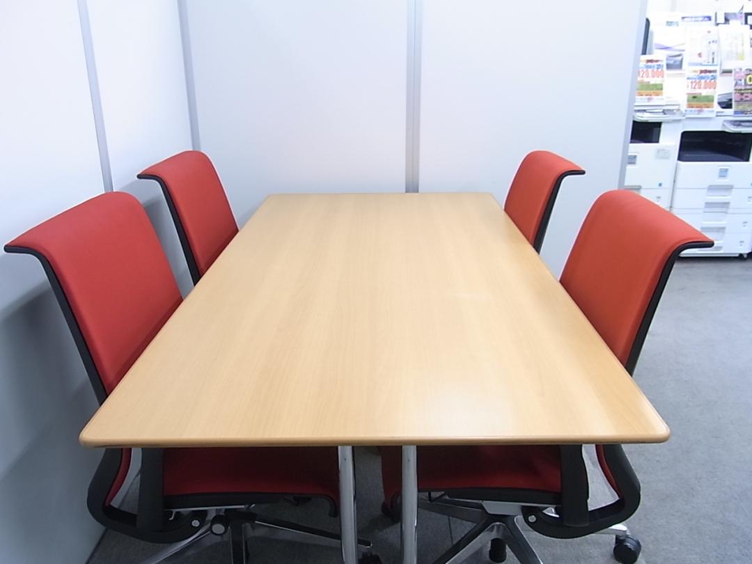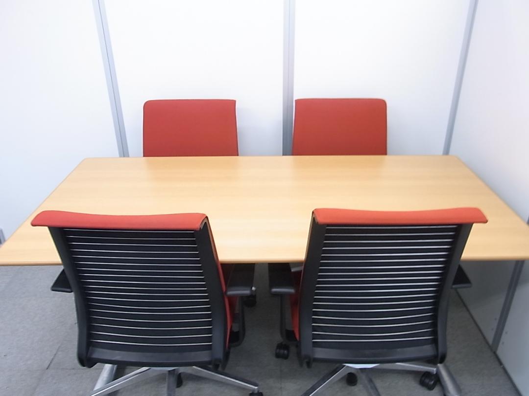 【高品質】オカムラ製 ミーティングテーブル ナチュラル天板 4名~6名様でのご利用におすすめです- 在庫数