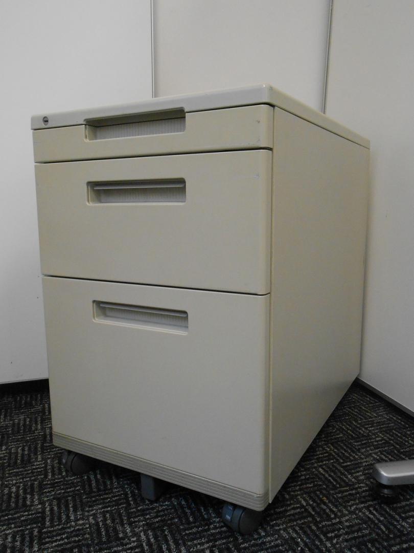 - 袖机のワゴンは、最下段がロング引出しになっており、従来より収納力120%アップ。
