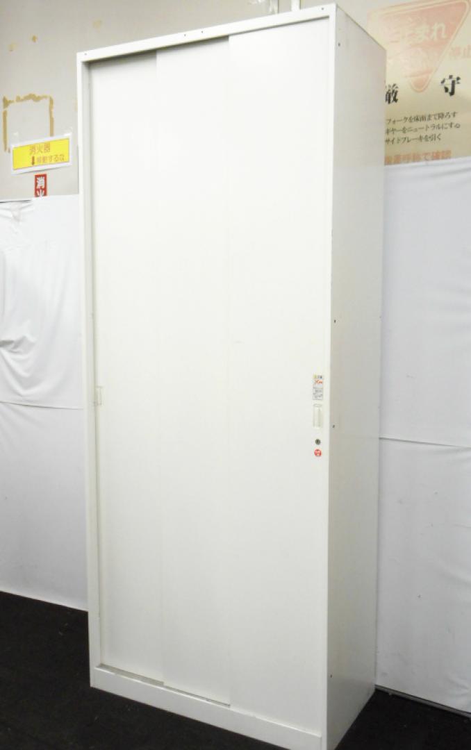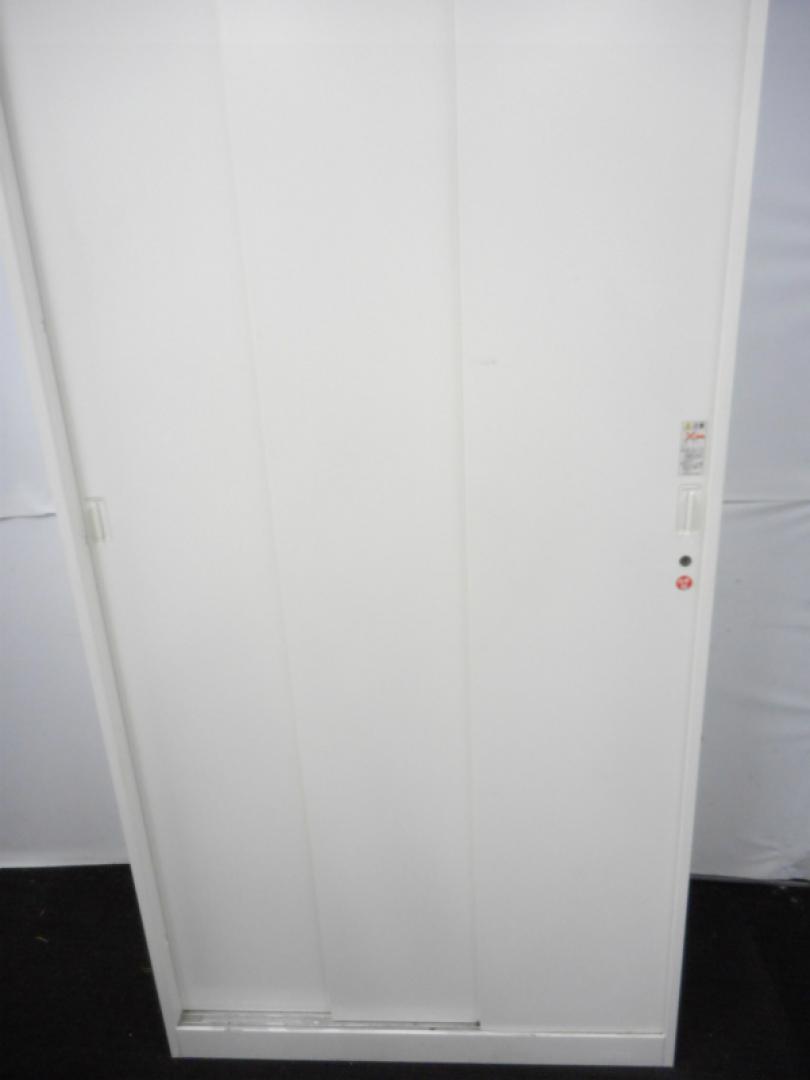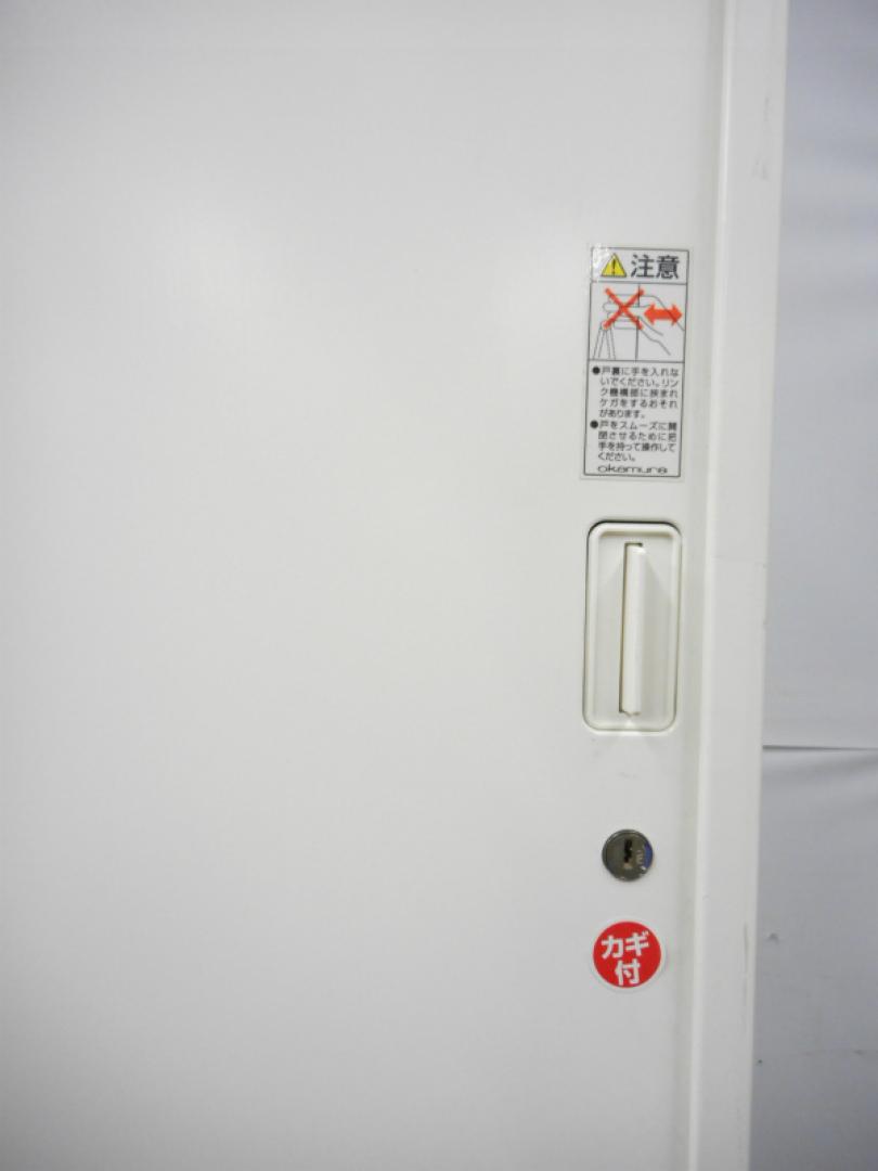 オカムラ製 人気レクトラインシリーズ ホワイト シリンダー W800xD450XH1050 3枚引戸 ※ベースなし 3枚引き違い書庫!!