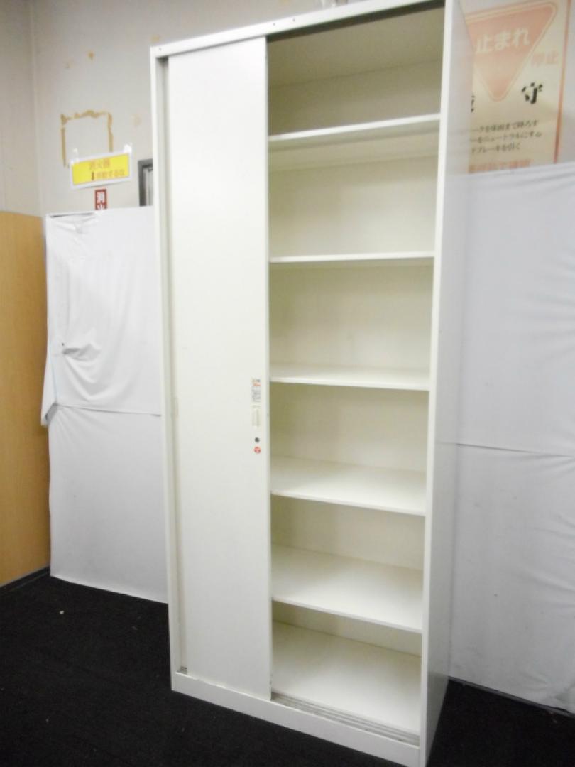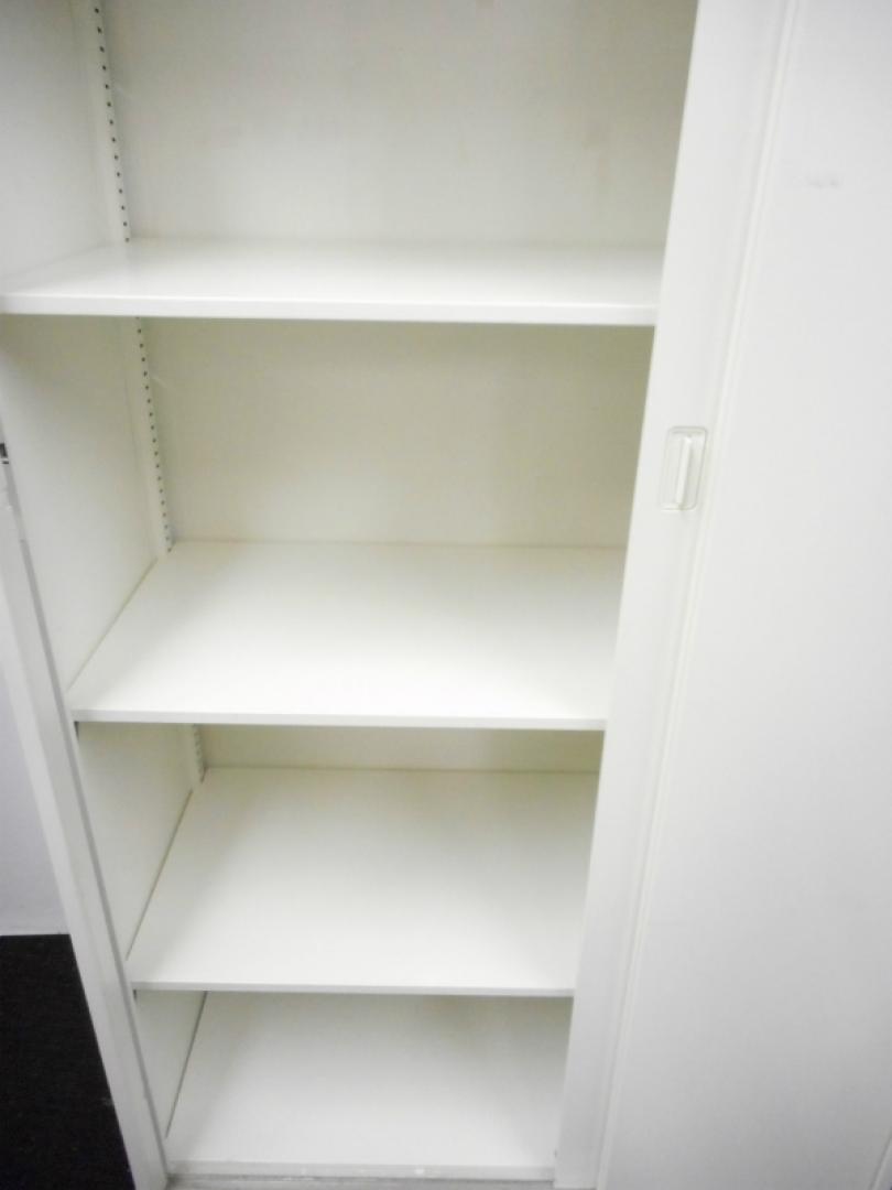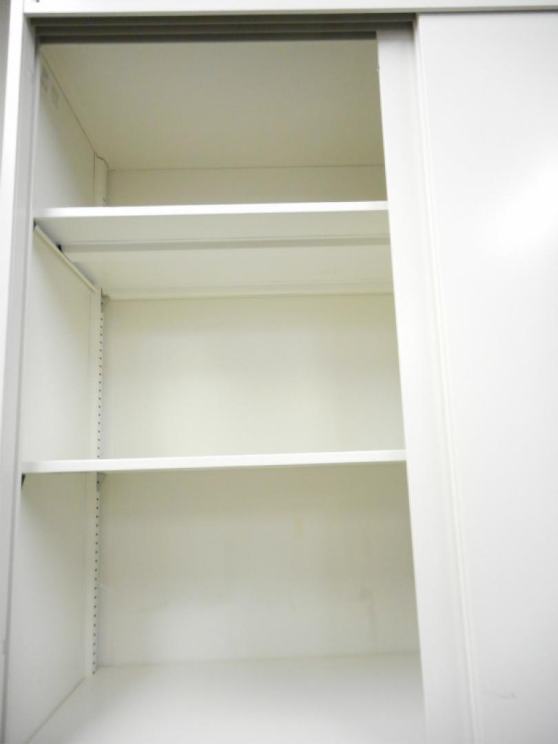 2枚引き戸書庫 オカムラ レクトライン 鍵付き シリンダー錠 ホワイト 天板無し スライド式の扉のため導線を邪魔しません