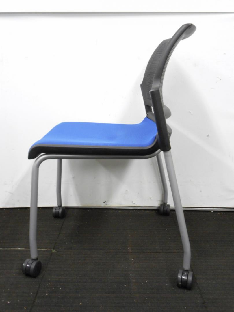 【10脚入荷!状態良好】内田洋行製 ネスティングチェア キャスター付き スタッキングチェア ブルー【中古オフィス家具 会議用チェア】【ロット】- 川崎店