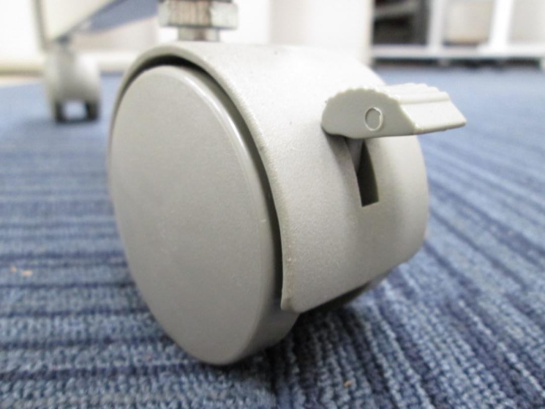 - 一部不具合あり天板歪み、アジャスター無し、キャスター使用不可ようなそのテーブルの本来の効用を果たすための機能以外の一部が使用不可な状態。(例、キャスターロッ ク機能使用不可、棚板無し等がある。)