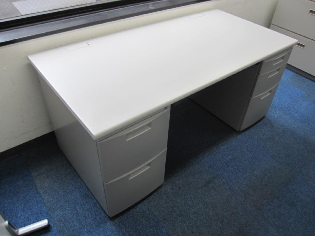 【希少!】【状態良好】幅160cm 奥行80cm 両袖机 【上長席などにも】肘かけや横幅大きなイスも入ります。天板広々。サーキュラーバリューCO2削減量の算出について
