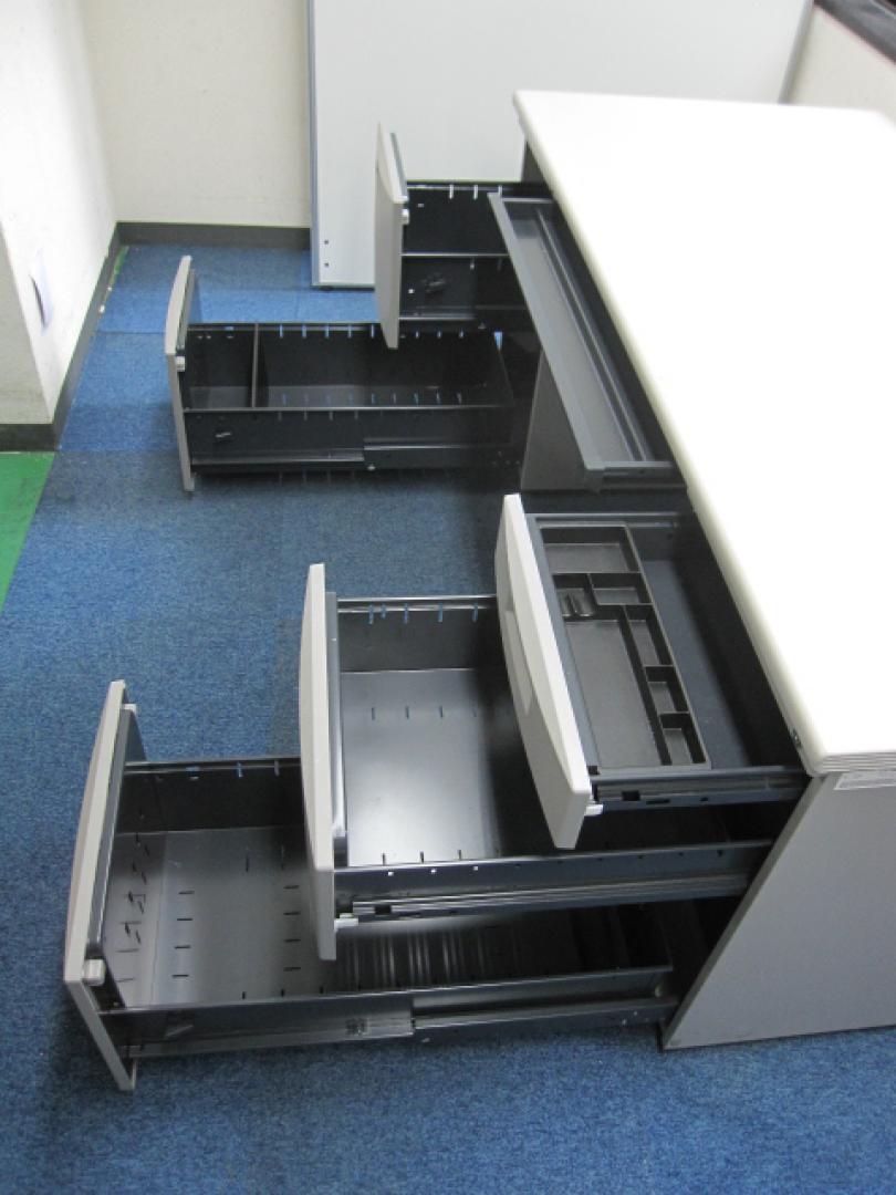店内にはいろいろなサイズやカラーのデスクやキャビネットを展示しており、お客様にニーズに合った商品をご提供させていただきます。