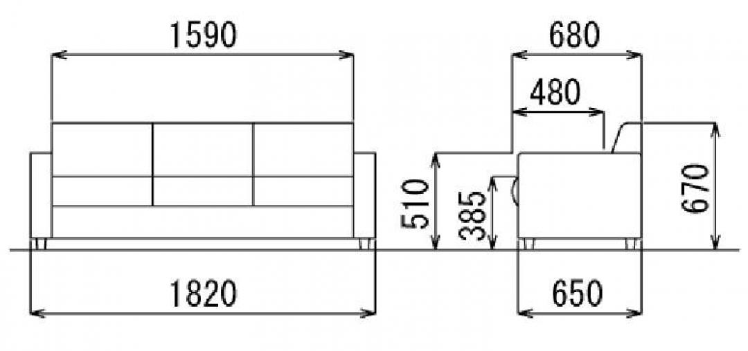 【中型シリーズ】応接向け 3人用ソファ ビニールレザー張り ※ベッドにはなりません