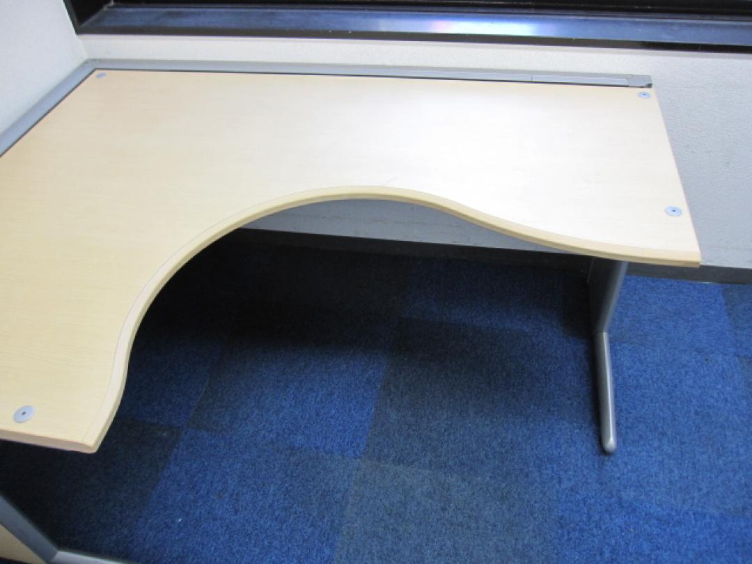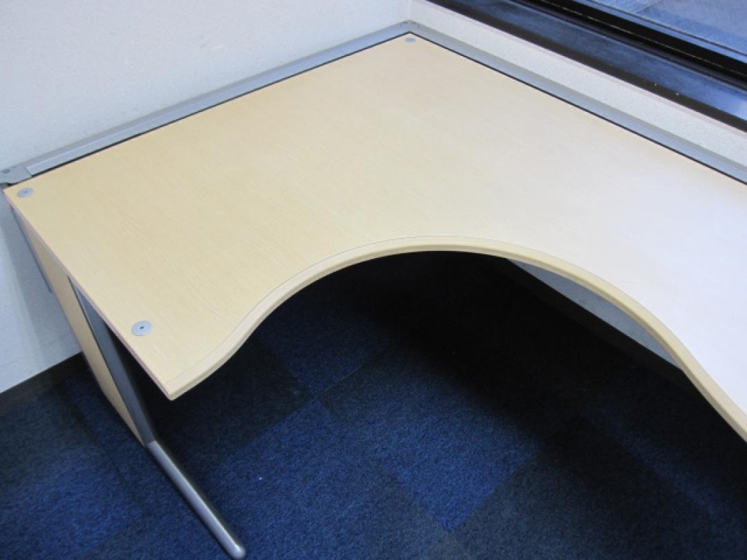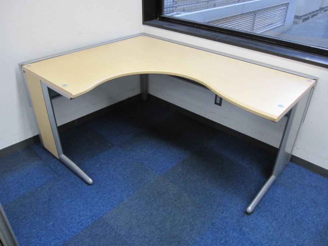 【おつとめ品】【オフィスデスク】L型デスク ナチュラルな木目(フレッシュメープル)天板リバーシブルタイプ※一か所天板固定用ビスが純正ではない物が付いています。【残り1台】- 品川・三田店