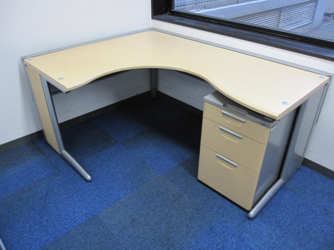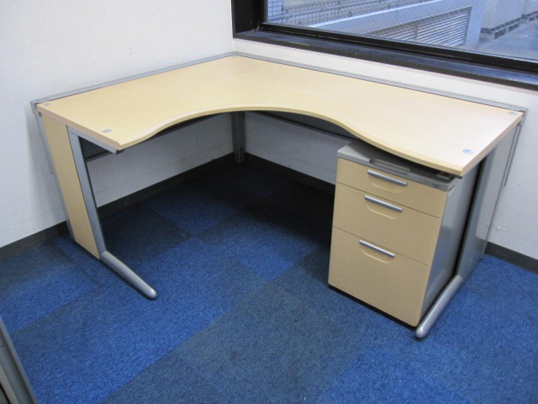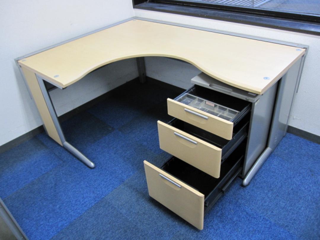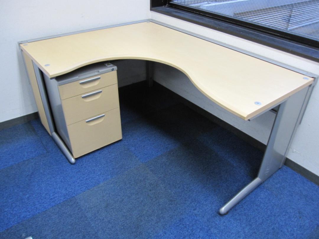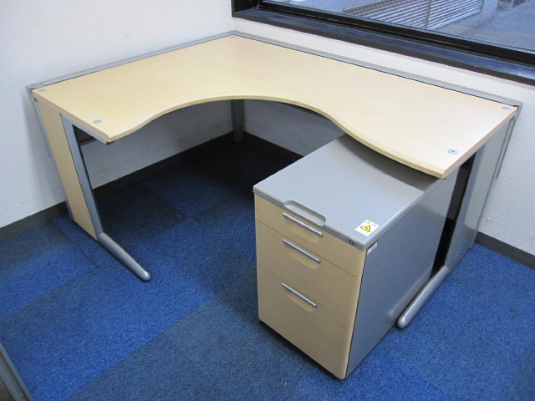【セット商品】エーキューズセット L型デスク(天板リバーシブル)と3段ワゴン(フレッシュメープル)【オフィスデスクワゴンセット】- 品川・三田店
