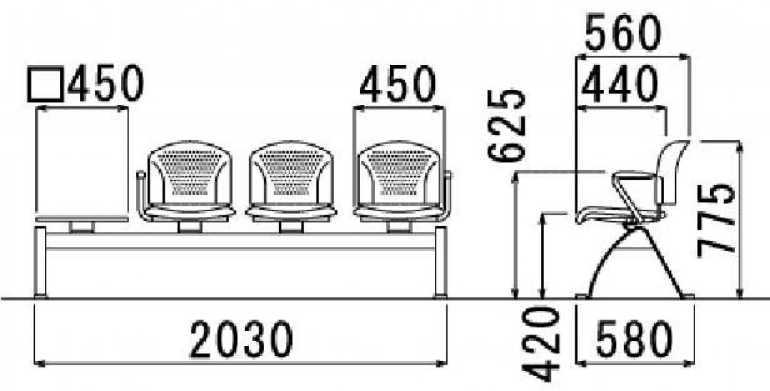 【スタイリッシュ】ロビーチェア 3人用 テーブルタイプ肘つきベンチシートカテゴリのおすすめ商品