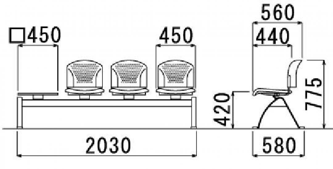 【スタイリッシュ】ロビーチェア 3人用 テーブルタイプ肘なしベンチシートカテゴリのおすすめ商品
