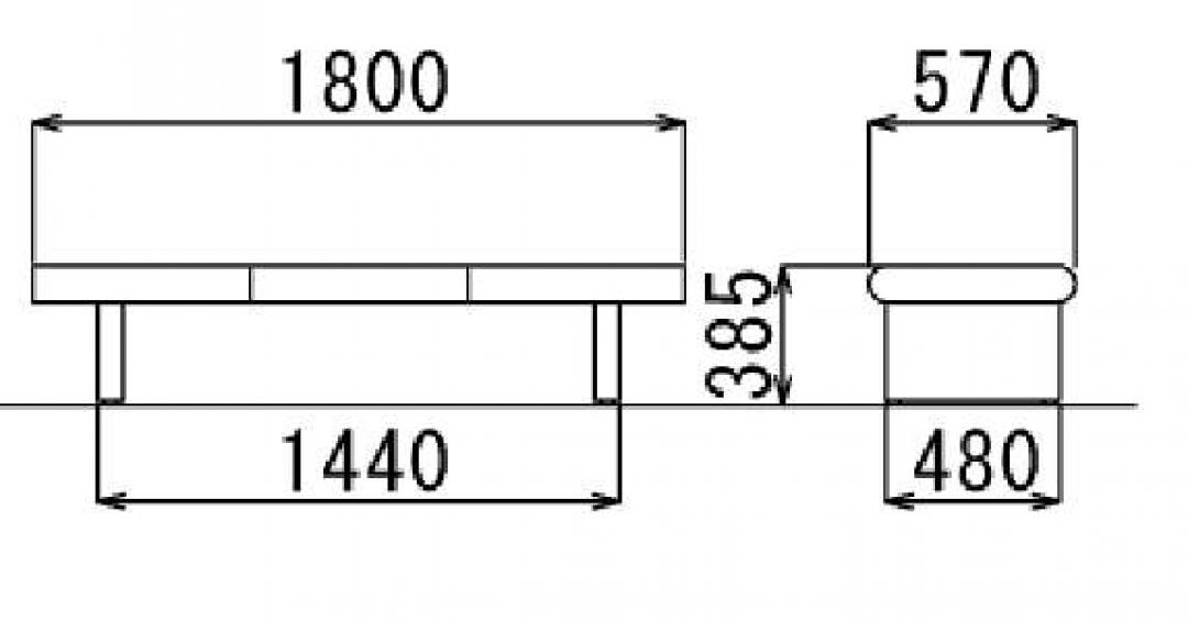 【柔かなデザイン】ロビーチェア 1800mm 背面なし- 全店共通商品
