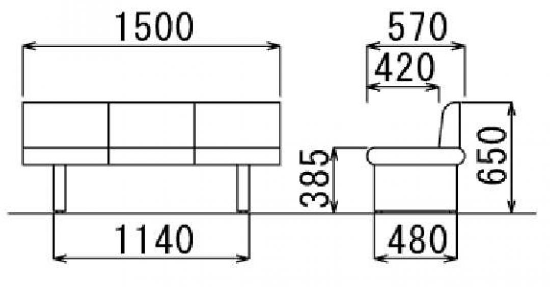 【柔かなデザイン】ロビーチェア 1500mm 背面つき- 全店共通商品
