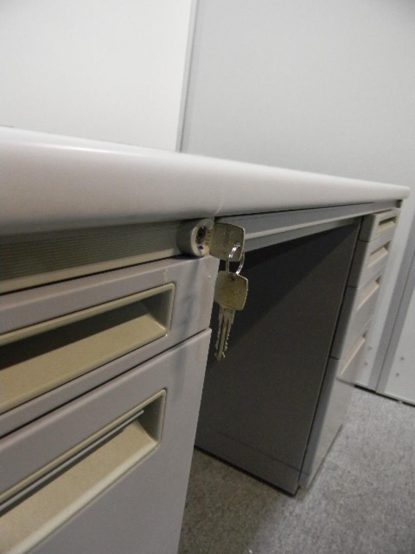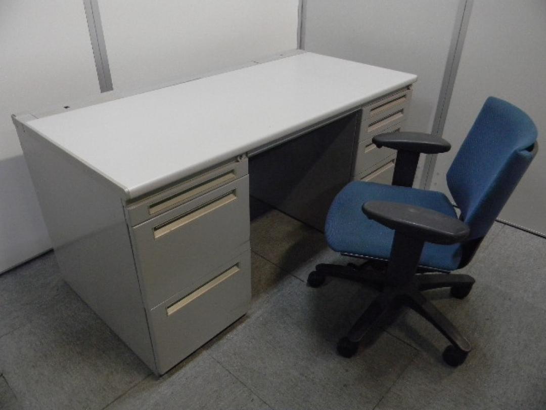 両袖机と肘付チェアのセットです!デスクは両側鍵付!人気シリーズのセット☆- 在庫数