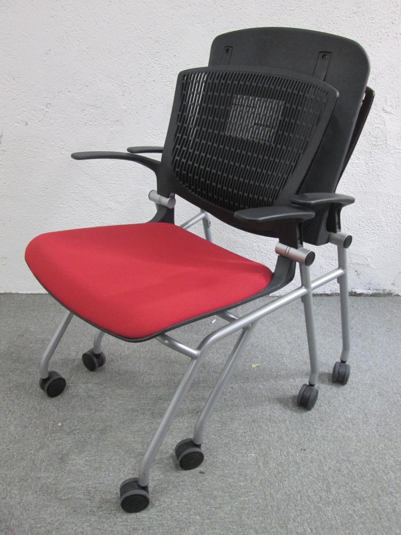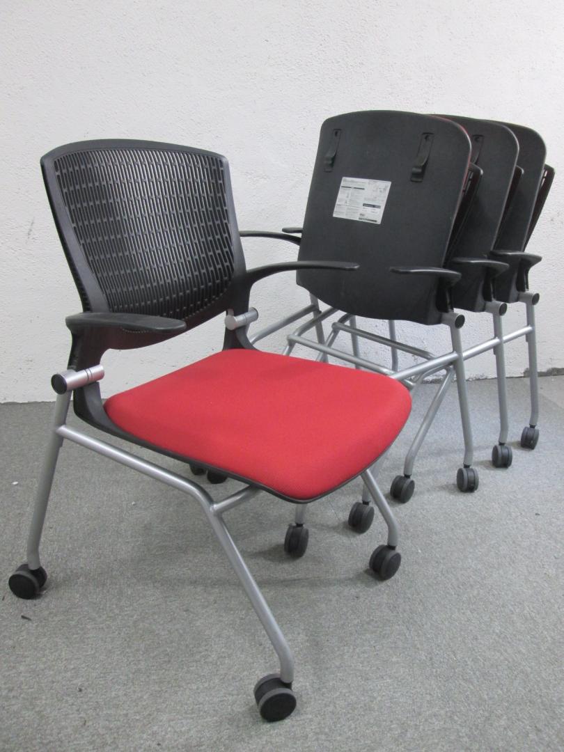 肘付グラータチェア|レッド×ブラック|背樹脂タイプ|ネスティング収納可- 横浜本店