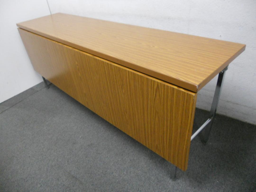 ■折り畳みテーブル ■幕板付き ■チーク(木目) ■W1800×D450×H700- 在庫数