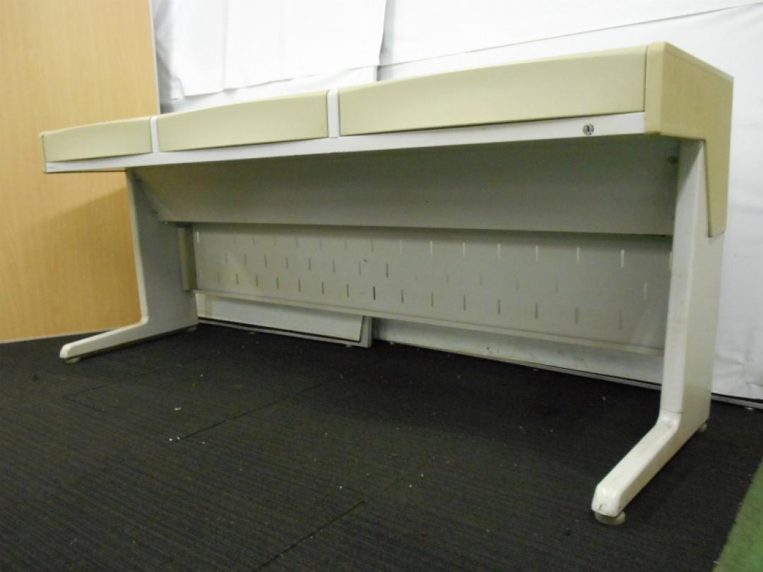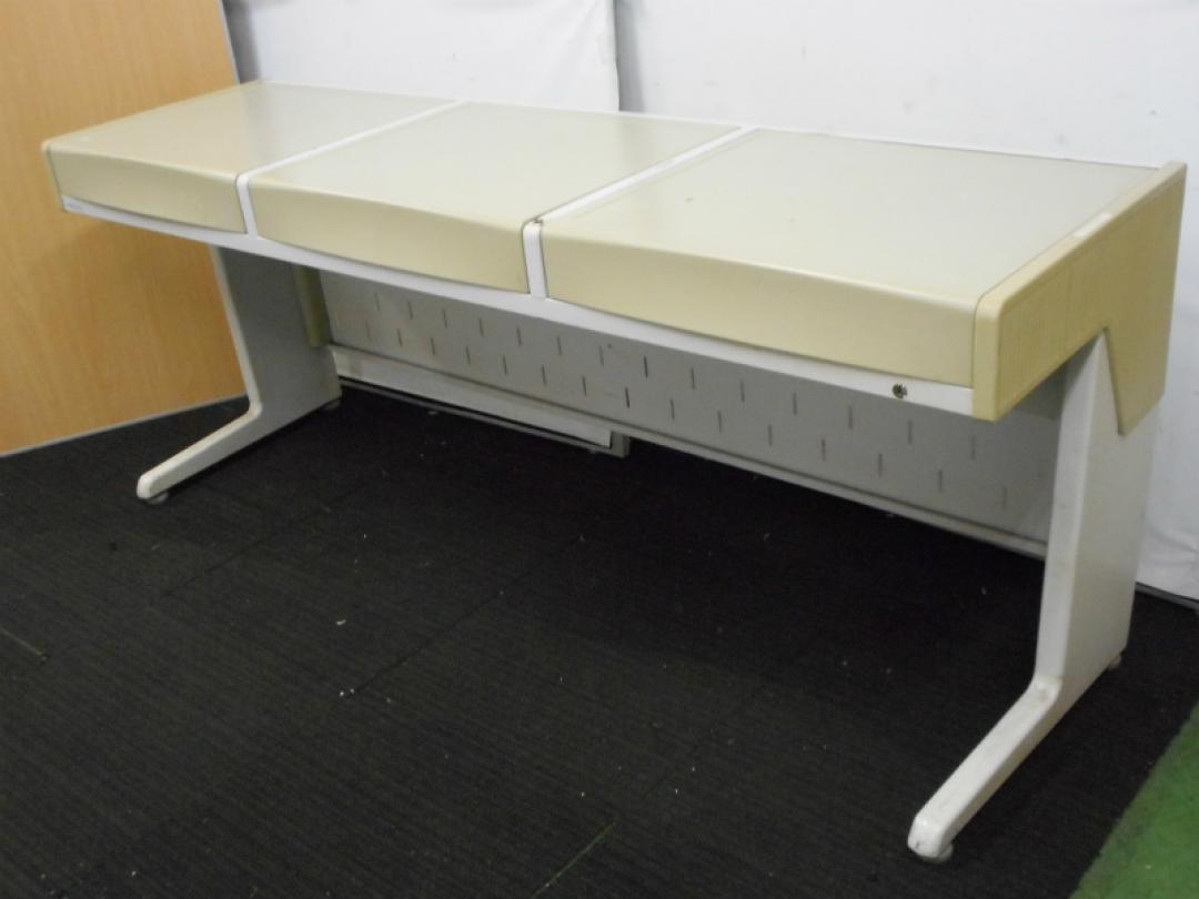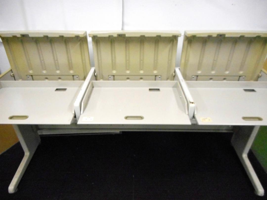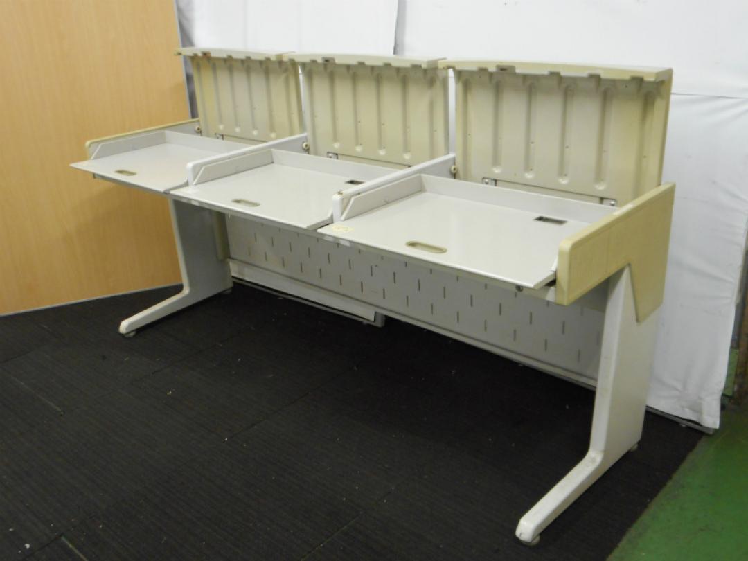 【おつとめ品】ノートパソコン収納タイプ 3名様用デスク 開閉天板 受注生産品 ※全体的に日焼けございます- 川崎店