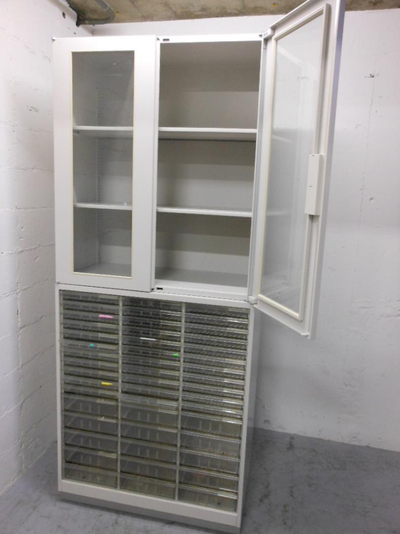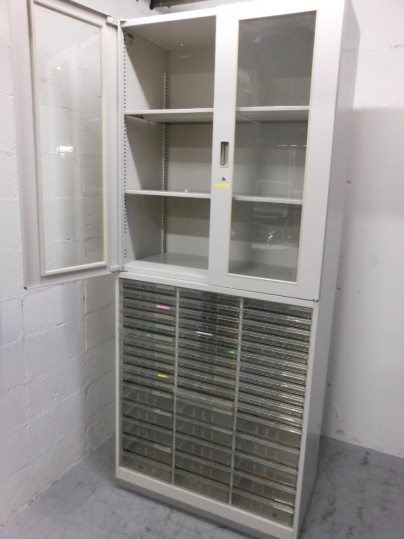 - 多数不具合あり引出の開閉不可、施錠不可、棚板無しといったその書庫の本来の効用を果たすための機能以外の多数が使用不可(例、扉、引出の開閉がしづらいなどがある。 )