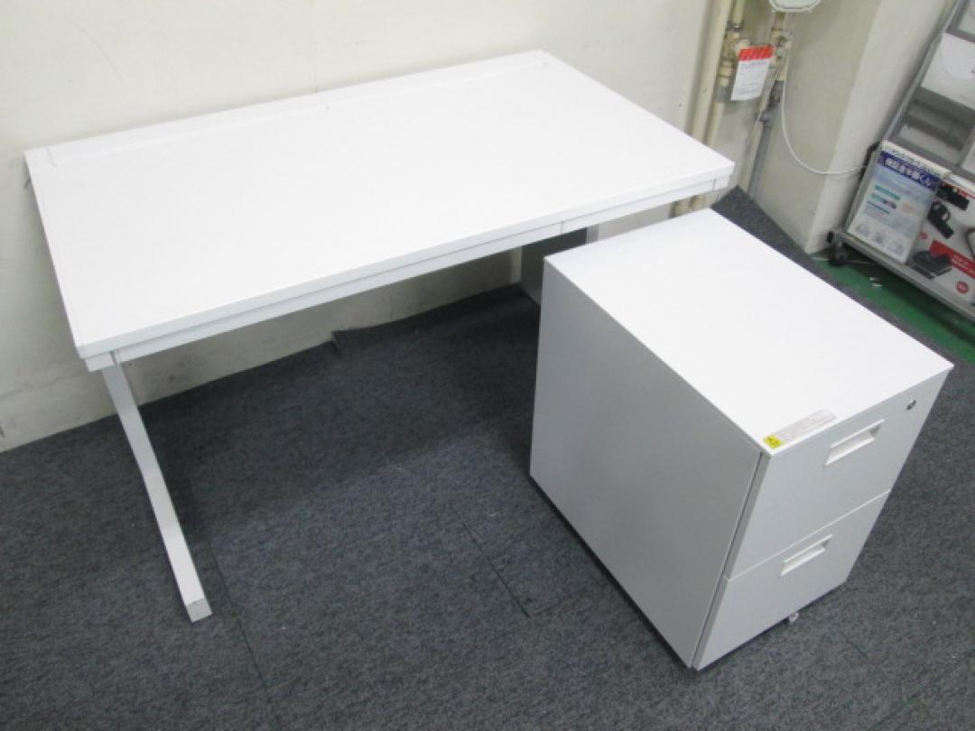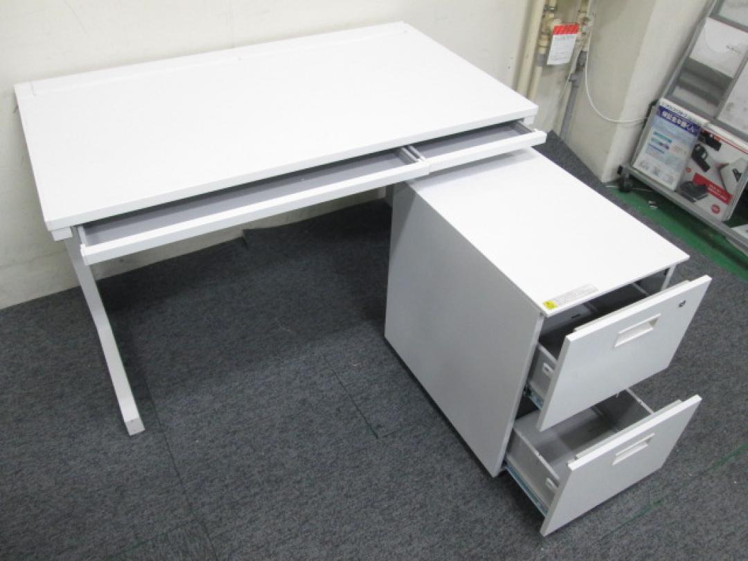 【内田洋行製ホワイトデスク+ワゴンセット】W1200+ホワイト色の人気商品【セット商品】【ロット】- 池袋店