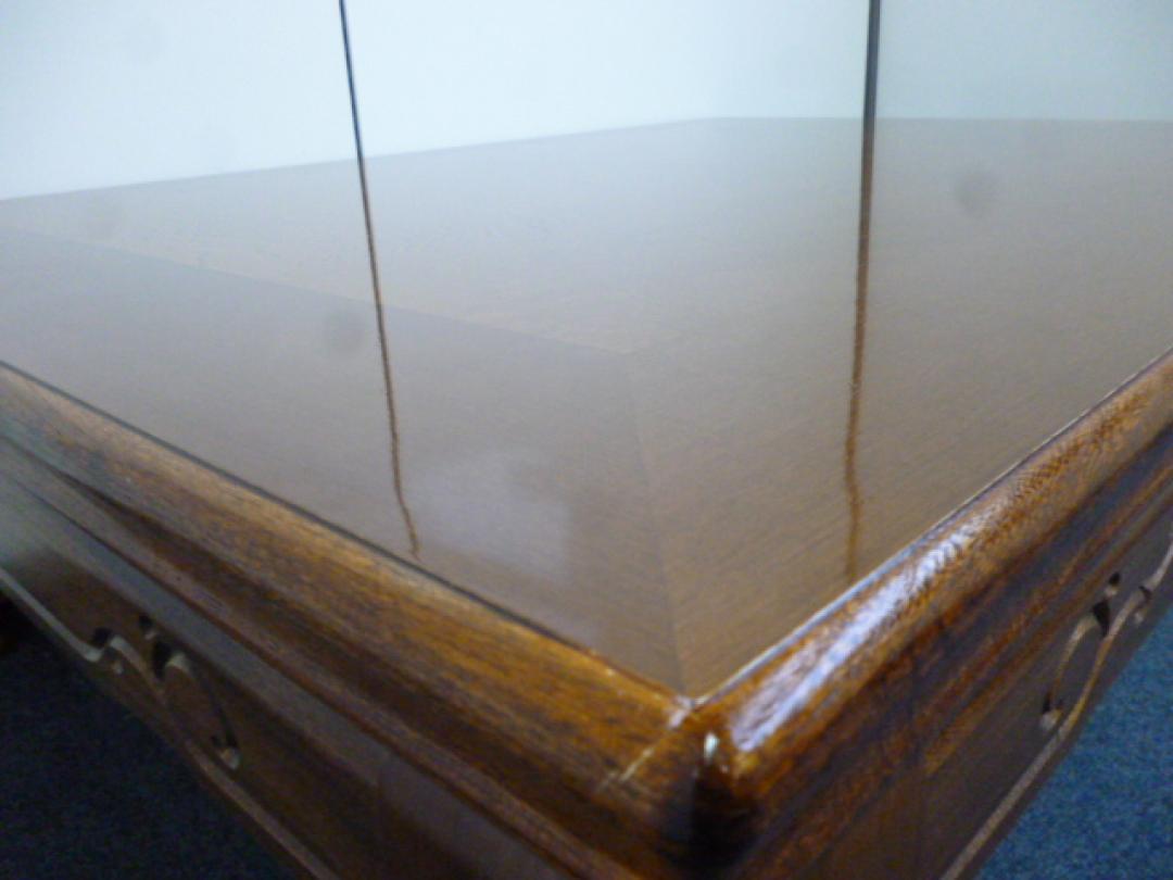 - 目立つ箇所あり傷・凹みが多数、深い傷・凹みが一部ある。(例、天板、幕板、棚板、サイド部分、脚部等にある。)