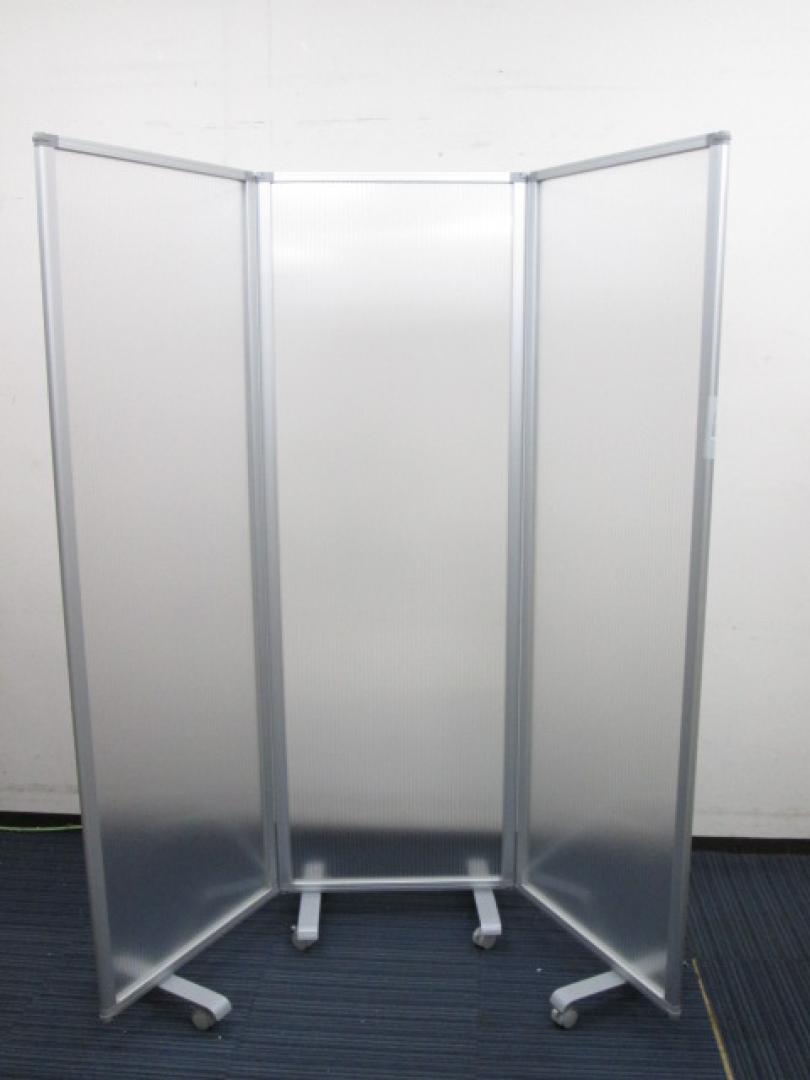 【ガラスじゃないので安全です】三つ折りパーテーション キャスター付き 左右のパネルは350度回転可能【中古オフィス家具】【中古オフィス用品】- 日本橋店