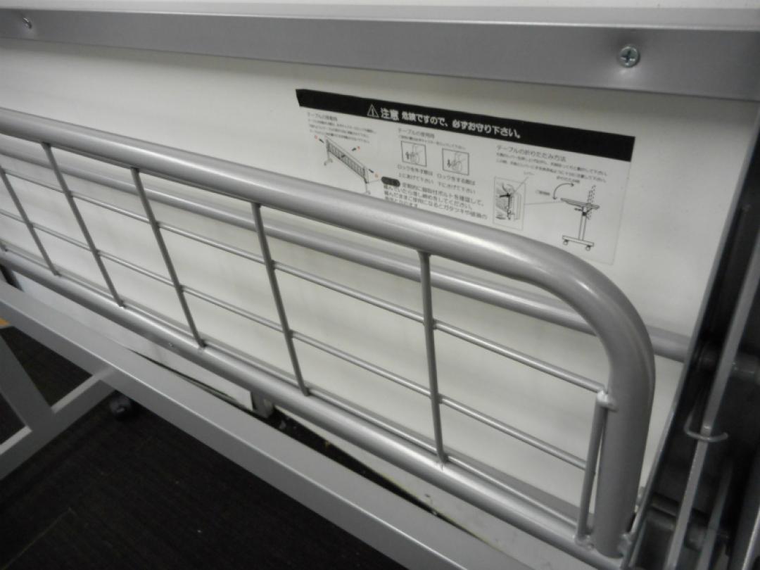 - 一部不具合あり天板歪み、アジャスター無し、キャスター使用不可ようなそのテーブルの本来の効用を果たすための機能以外の一部が使用不可な状態。(例、キャスターロッ ク機能使用不可、棚板無し等がある。)