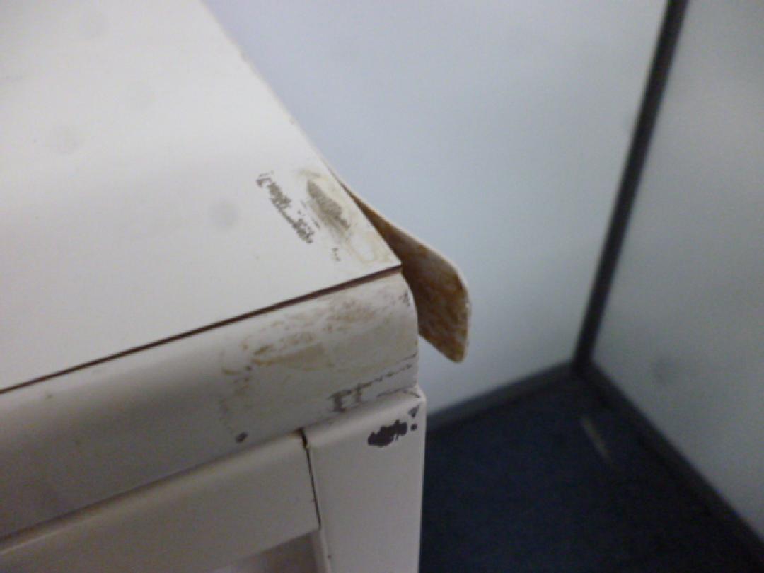 - あり黄ばみ・変色が広い範囲にうっすらある、または濃い黄ばみ・変色が一部ある。(例、天板、正面、背部、サイド部分にある。)