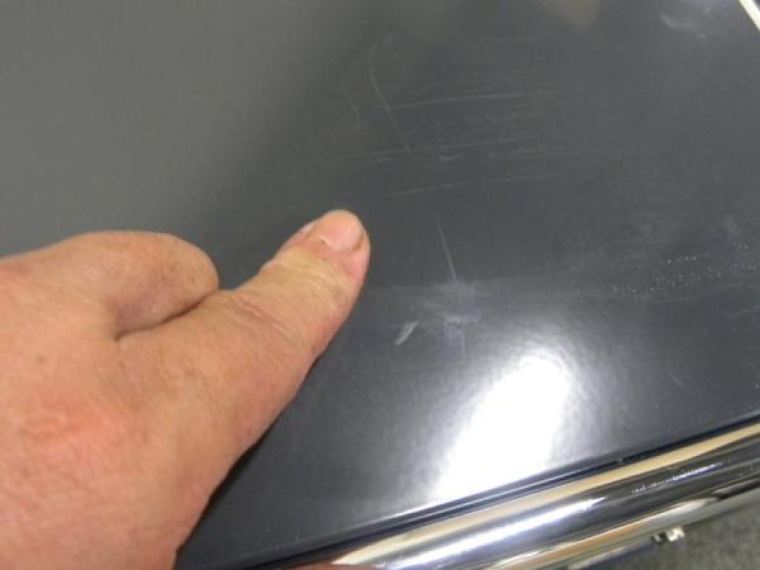 - あり黄ばみ・変色が広い範囲にうっすらある、または濃い黄ばみ・変色が一部ある。(例、天板、正面、背部、サイド部分にある。)