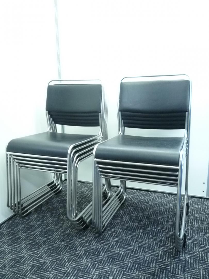 【中古】 黒 ビニールレザー ×10脚セット コクヨ/KOKUYO スタッキングチェア 120374