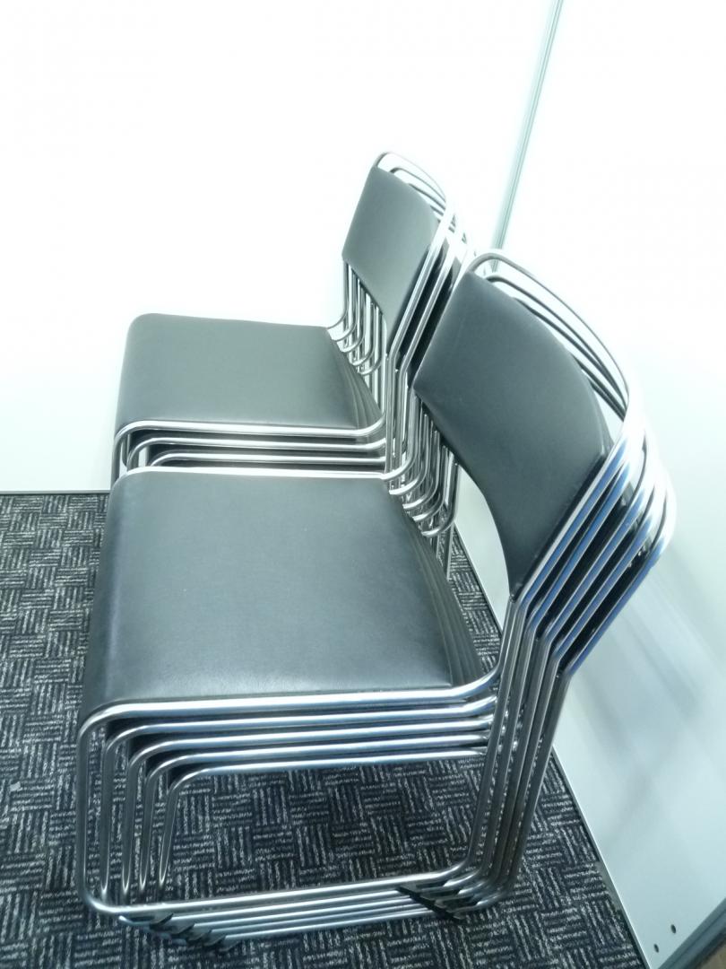 【34脚揃います!】【セットでお得!】ビニールレザーのスタックチェア■会議・催事用に■汚れの目立たないブラック■フレーム頑丈!【セット商品】- 埼玉本店
