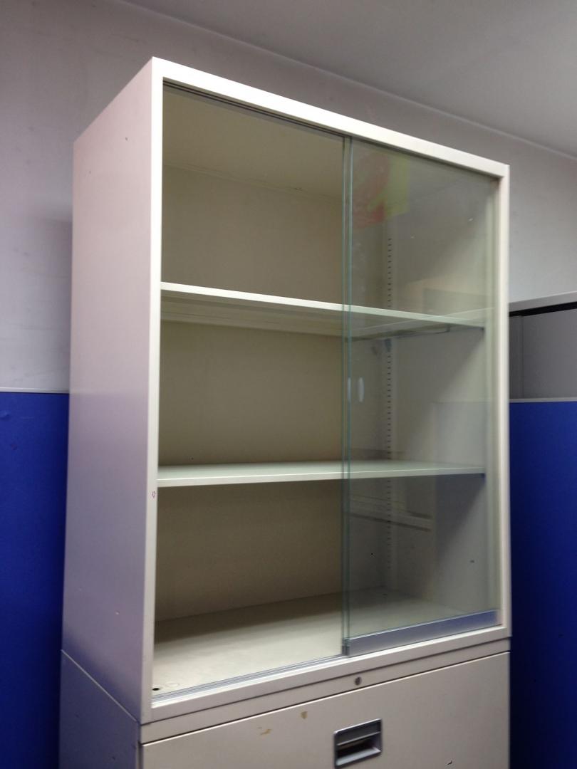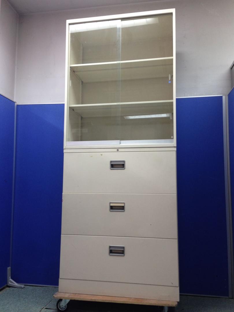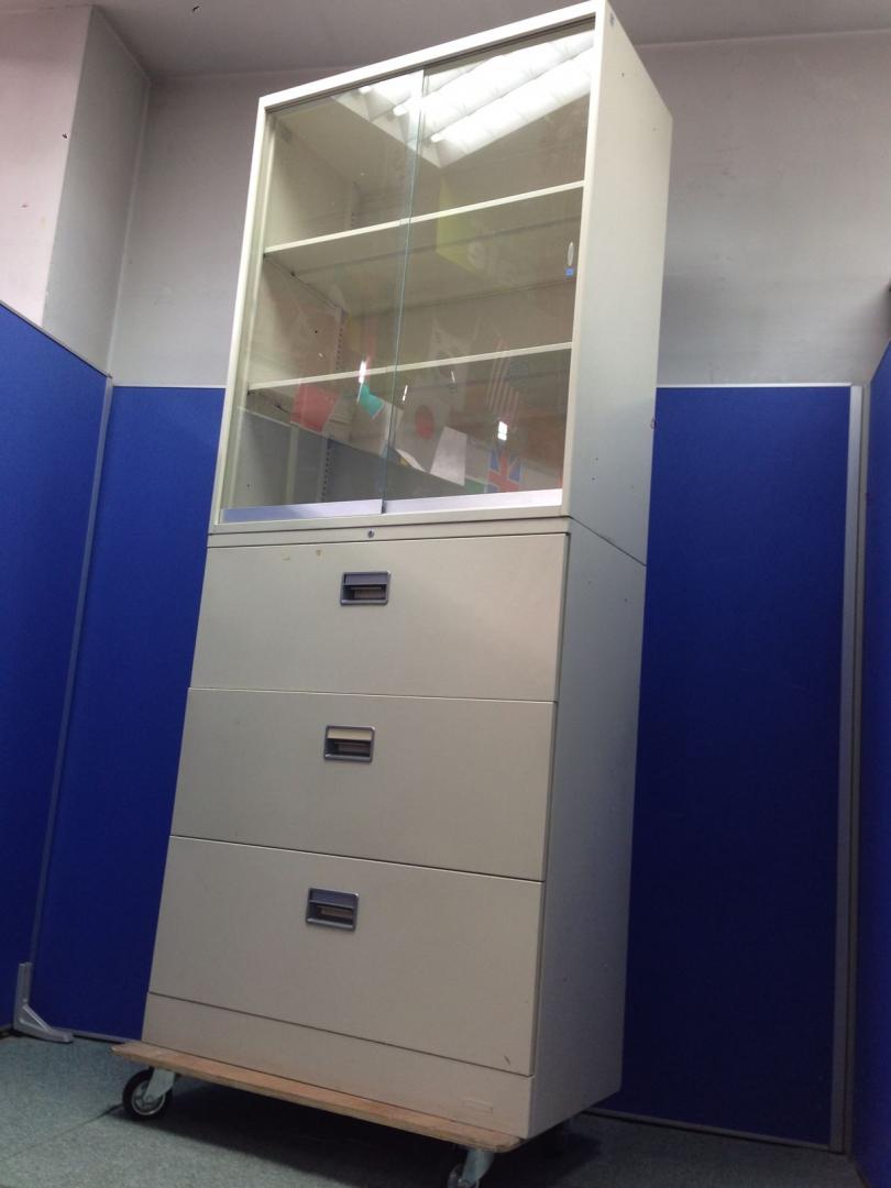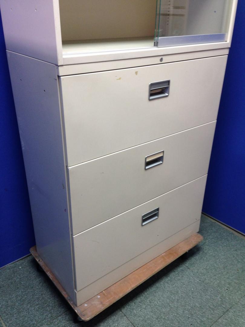 【在庫5台以上】|オカムラ製|上:ガラス 下:3段ラテラル|稀少な、ガラス書庫|- 京都東寺店