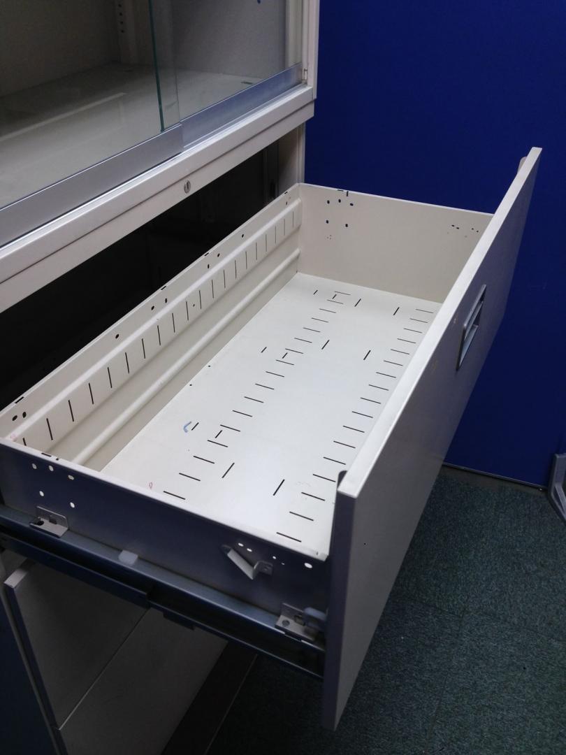 - 一部不具合ありそ引出の開閉不可、施錠不可、棚板無しといったの書庫の本来の効用を果たすための機能以外の一部が使用不可(例、扉、引出の開閉がしづらいなどがある。 )