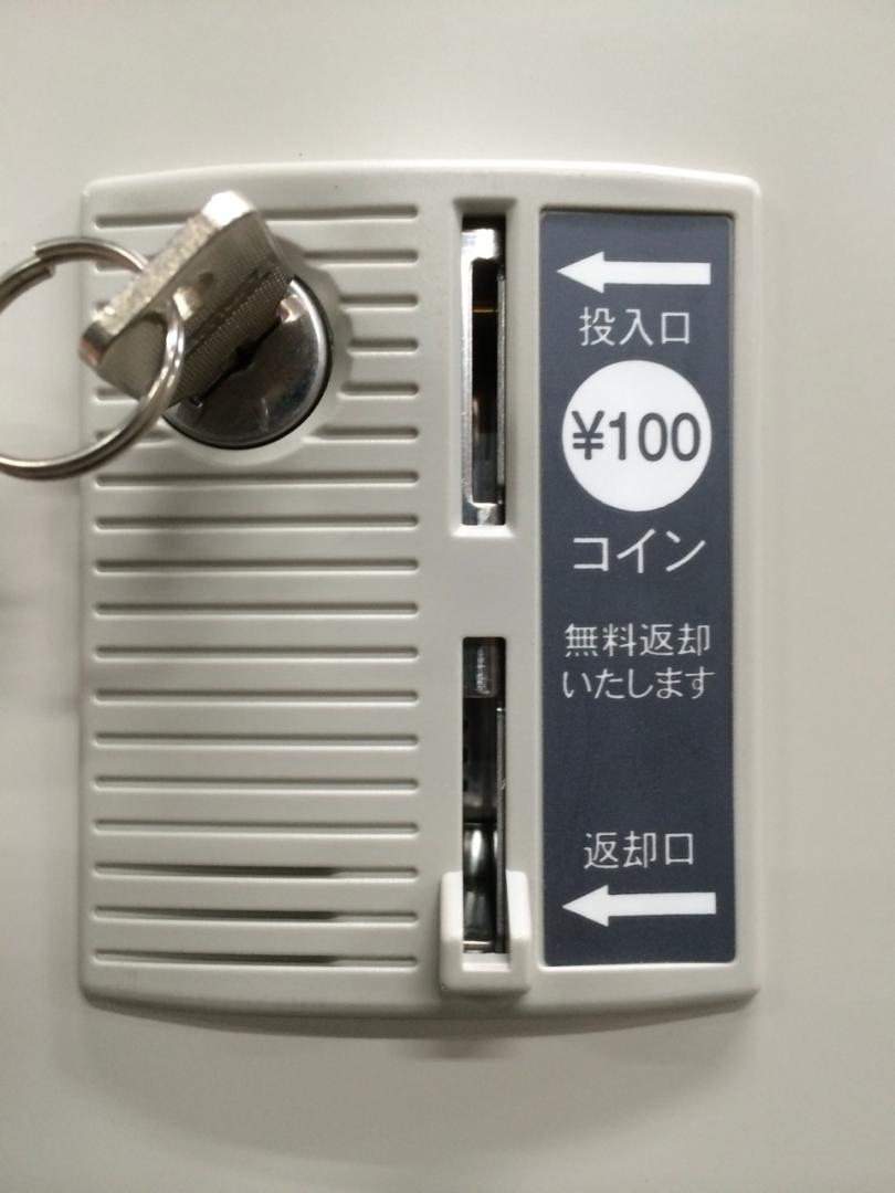 こちらは施錠する時に硬貨を投入し、開錠すると使用硬貨が返却されます。