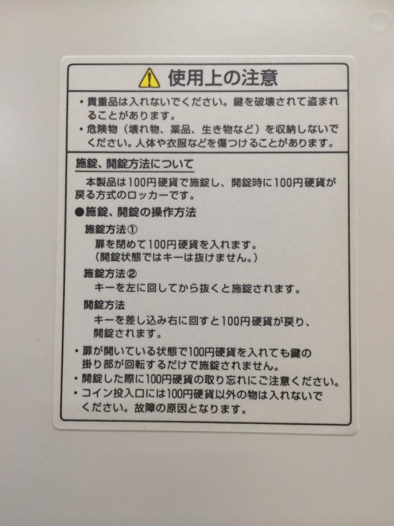 - 好調そのロッカーに備わっている全ての機能が使用可能