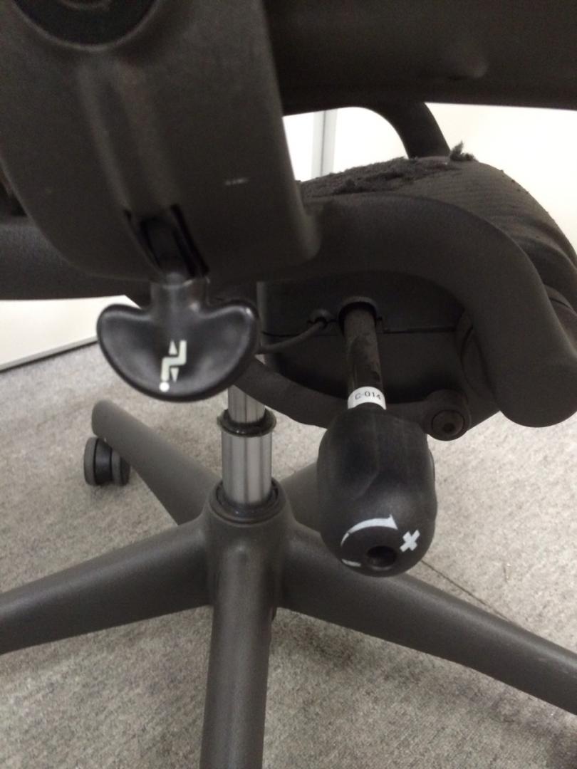- 背もたれの裏にあるランバーサポート(パッド) の厚さは裏表で調節。上下の移動で、適切な高さ に調節できます。
