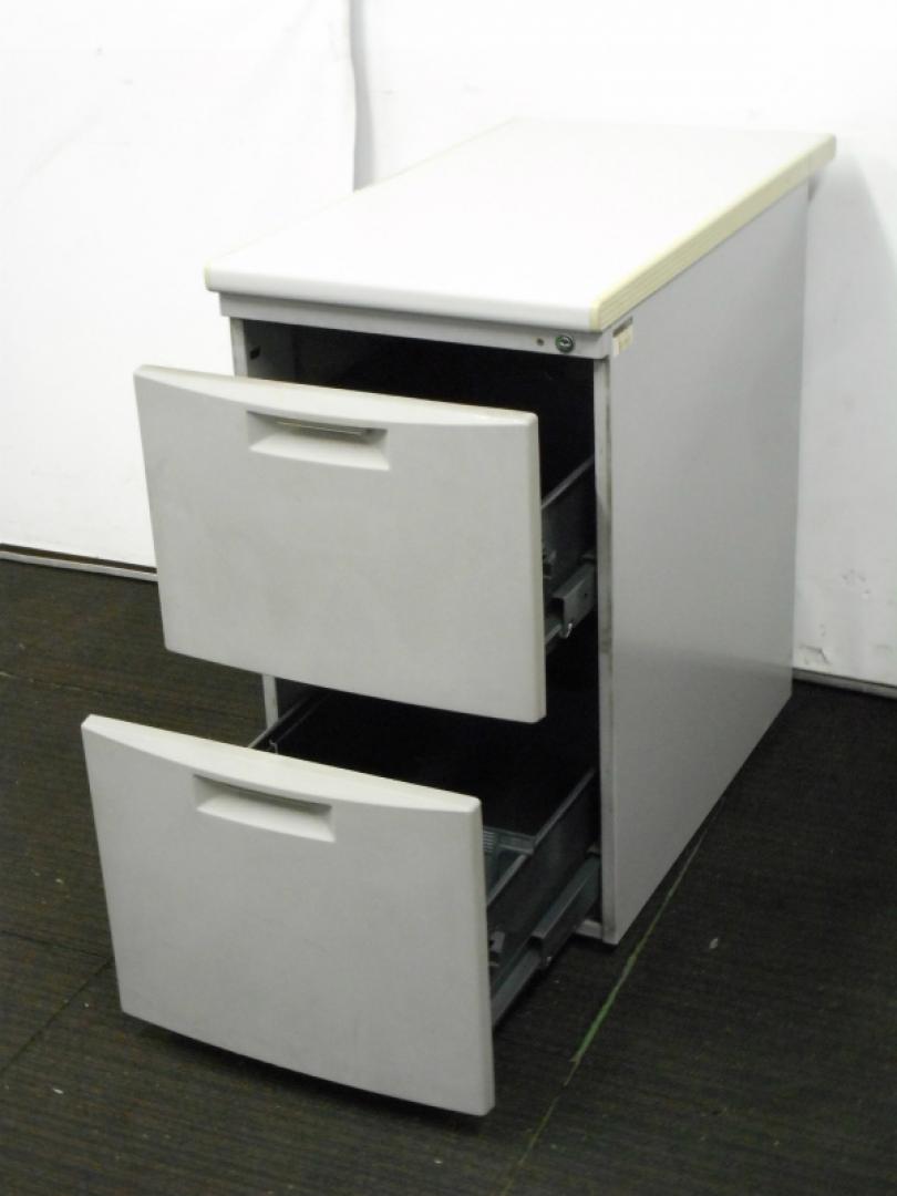 【状態良好】イトーキ製 2段引出し 脇机 デスクと同じ高さの引出型キャビネット グレー【中古オフィス家具 事務机】- 川崎店