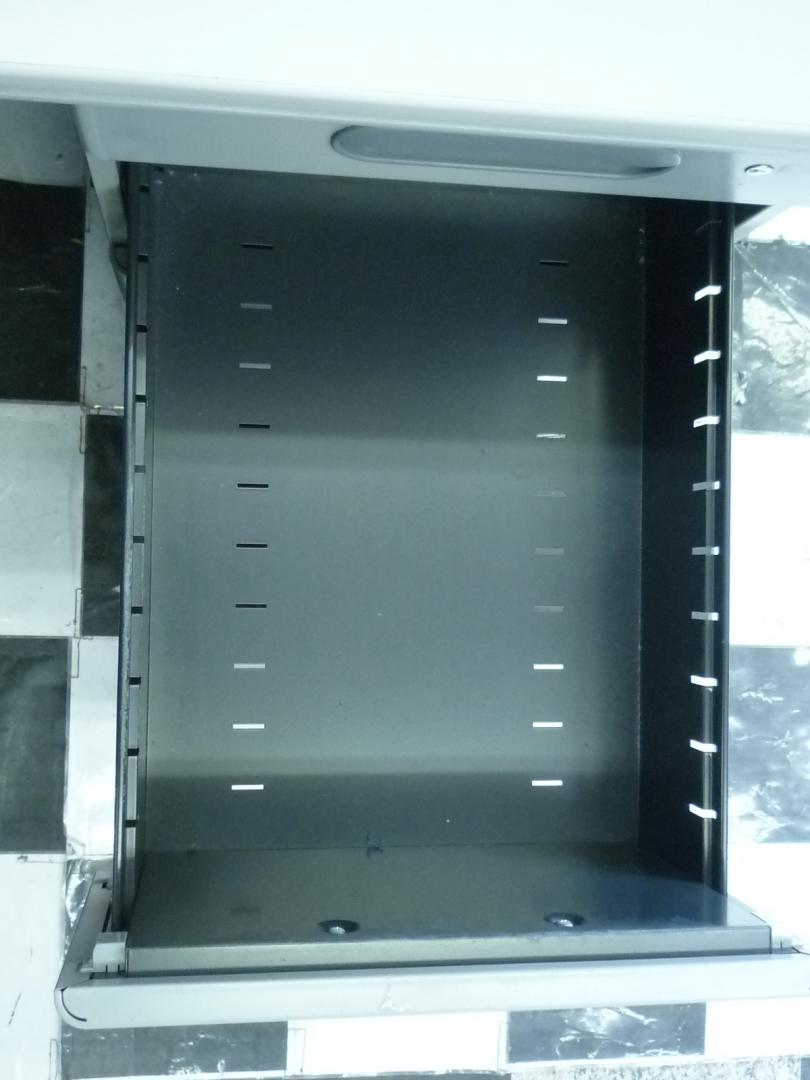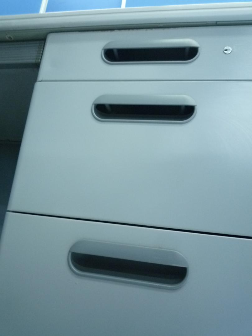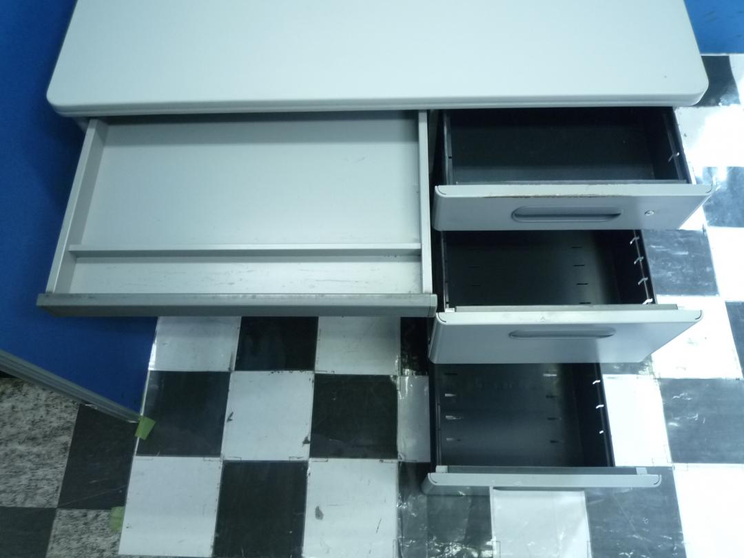 引き出しが3段あって、A4ファイルや備品・文房具がしまえるのは最近のデスクと一緒です。