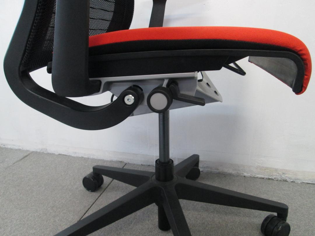 快適な座り心地に不可欠な調節機能である、上下昇降、座面の奥行き調整、リクライニングなどを備えており、操作もわかりやすく好評です。 特に、座面の奥行きは、座面下の左右に通った細いバーで調整でき、座ったままで軽やかに滑るように調整が可能です。 価格面では、新品では高めですが、中古は流通も多く、定価の3割前後の価格で高級チェアの座り心地を手に入れることができます!