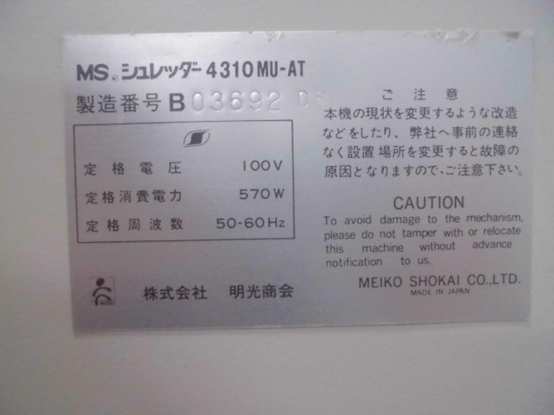 【中古】 MS-4310MU-AT 明光商会 シュレッダー 121018