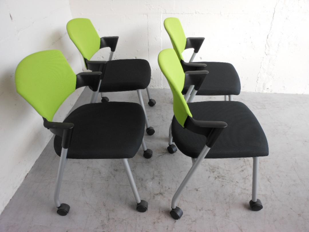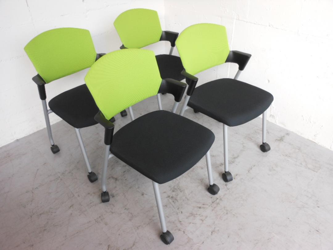 4脚セット!来客時に重宝致します!重ねて収納キャスター付ミーティングチェア【セット商品】- 神戸・三宮店