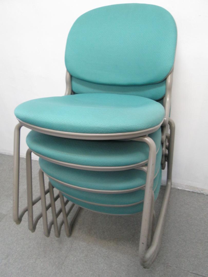 5脚【セット商品】オカムラ製 スタッキングチェア グリーン- 名古屋本店