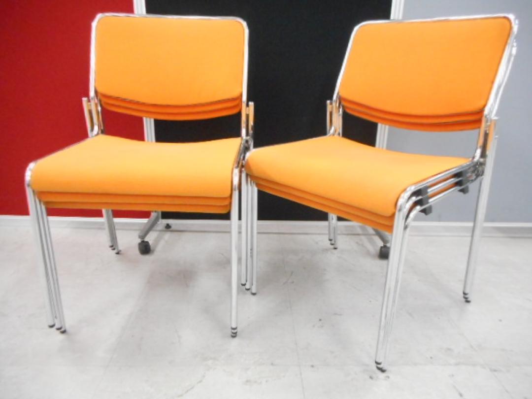 【6脚セット】スタッキングチェア■オレンジ【在庫多数有】- なんば日本橋店