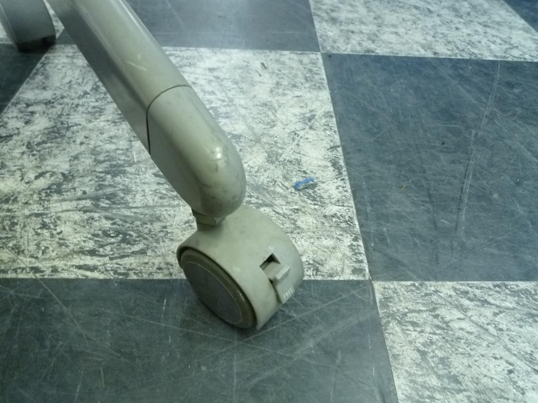 - 一部不具合あり天板歪み、アジャスター無し、キャスター使用不可ようなそのテーブルの本来の効用を果たすための機能以外の一部が使用不可な状態。(例、キャスターロッ ク機能使用不可、棚板無し等がある。)