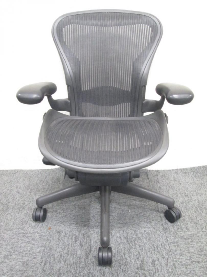 【★状態イマイチのためお安く!】■ハーマンミラー製 アーロンチェア Bサイズ 固定肘 ※キズあり・ランバーサポート無・昇降ガス圧弱めのためお安く!【訳あり特価品】