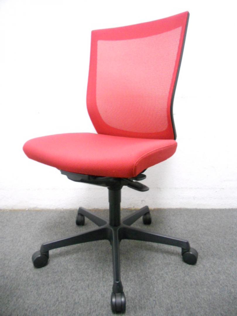 ・オカムラ エスクードメッシュチェア 肘無 レッド/ブラックシェル