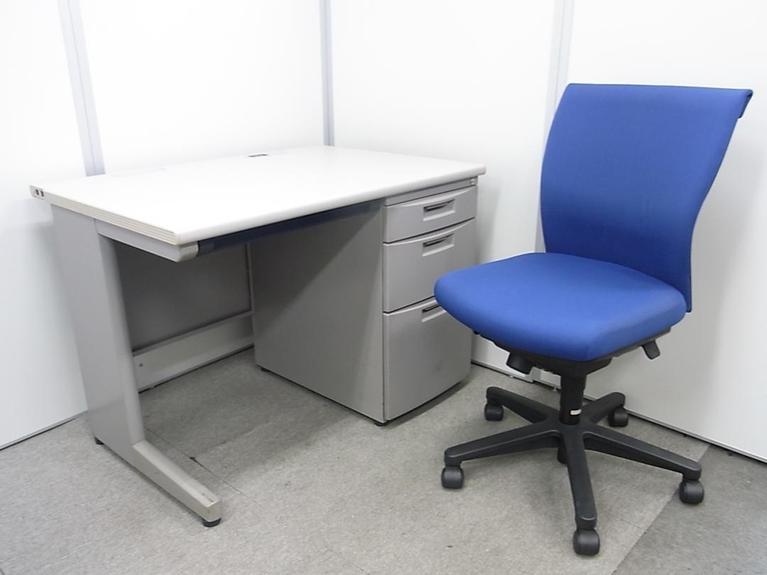 【セット商品(デスク×1台、ワゴン×1台、チェア×1脚)】【幅1000㎜のコンパクトタイプ!使い勝手の良い3段収納の疑似片袖机!】■イトーキ(ITOKI)製 CZNシリーズ 片袖机 ■W1000㎜ ■グレー ■シリンダー錠※横浜本店撮影画像