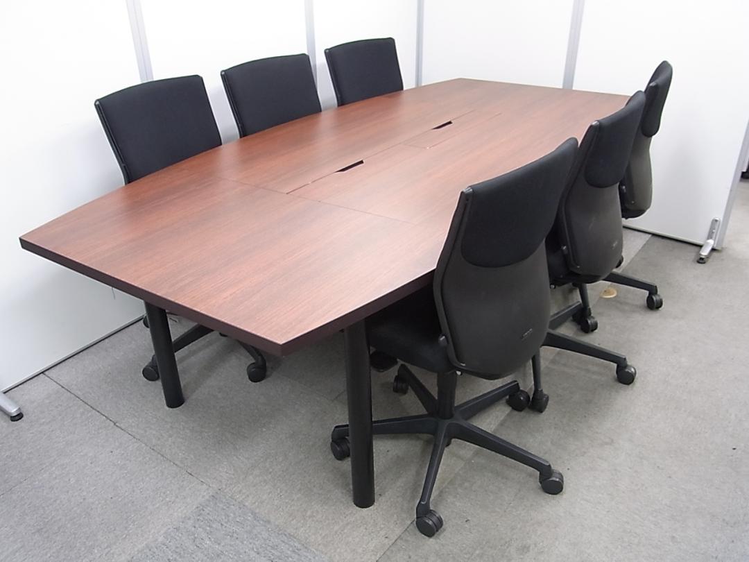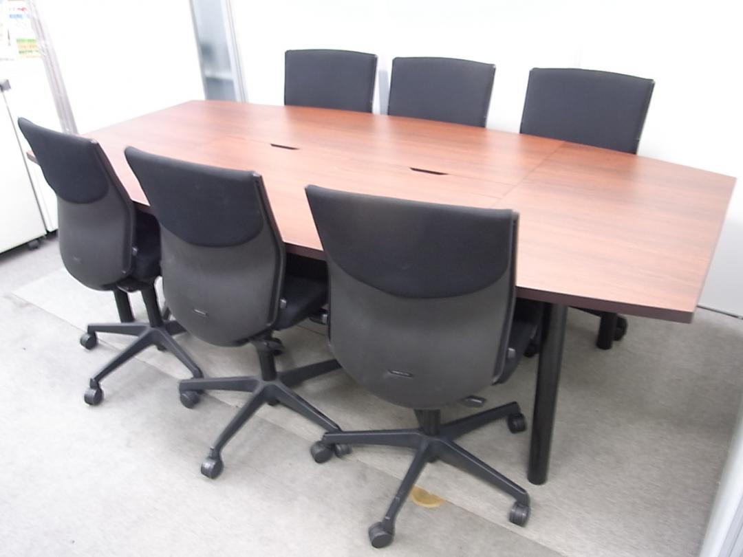 【7点セット】ミーティング用テーブルと機能性に優れたチェア6脚!- 在庫数