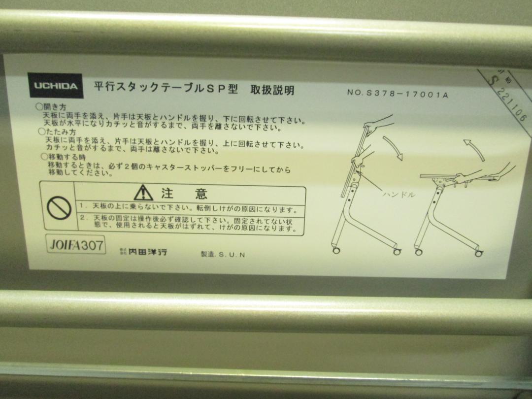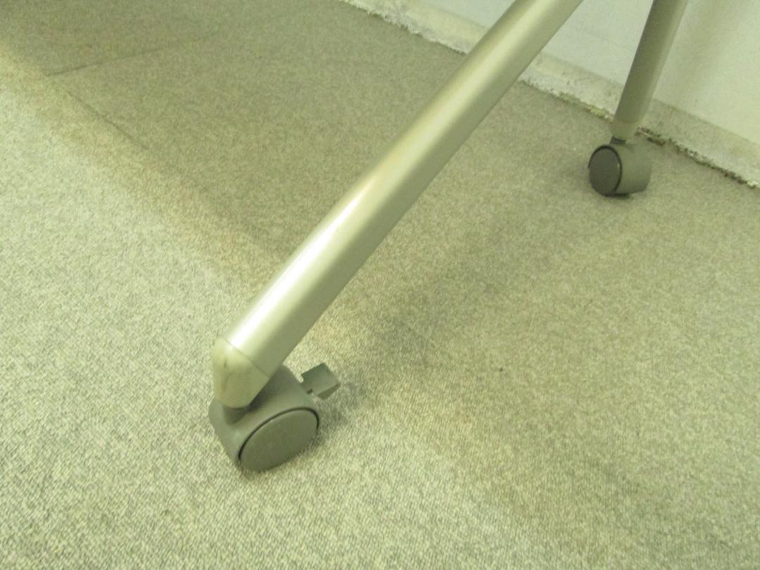 - 一部不具合あり天板歪み、アジャスター無し、キャスター使用不可ようなそのテーブルの本来の効用を果たすための機能以外の一部が使用不可な状態。(例、キャスターロッ ク機能使用不可、棚板無し等がある。)